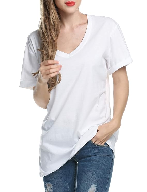 - V-neck short sleeve top, loose t-shirts